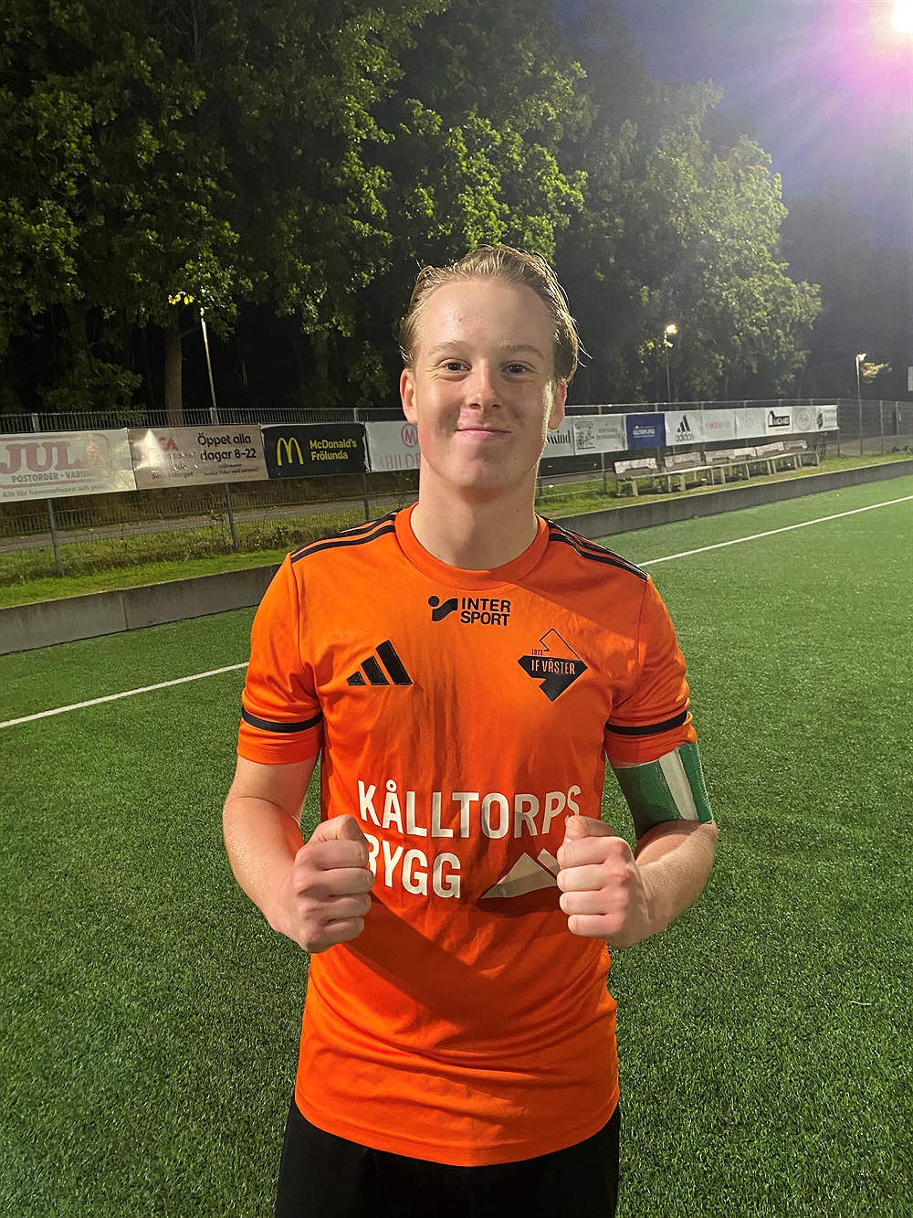 I 26 minuten får vi hörna och då slår Viggo en fin hörna som Elton trycker in med pannan och 1-0.